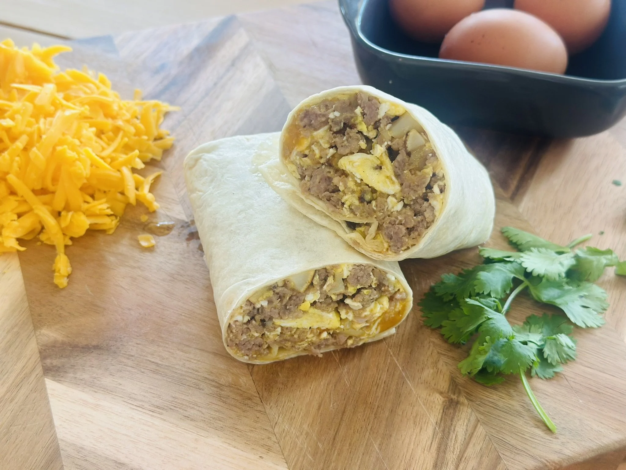 Featuring our flavorful pasture-raised pork chorizo, these burritos pack an extra punch of spice and savory heat. Each burrito is wrapped in a large tortilla with crispy potatoes, fluffy eggs, and melted cheddar cheese. They are the perfect grab-and-go option for busy mornings or a hearty lunch. These freeze exceptionally well! Simply defrost in the refrigerator a day or two in advance before reheating. Full 4 Burritos, Half 2 Burritos.