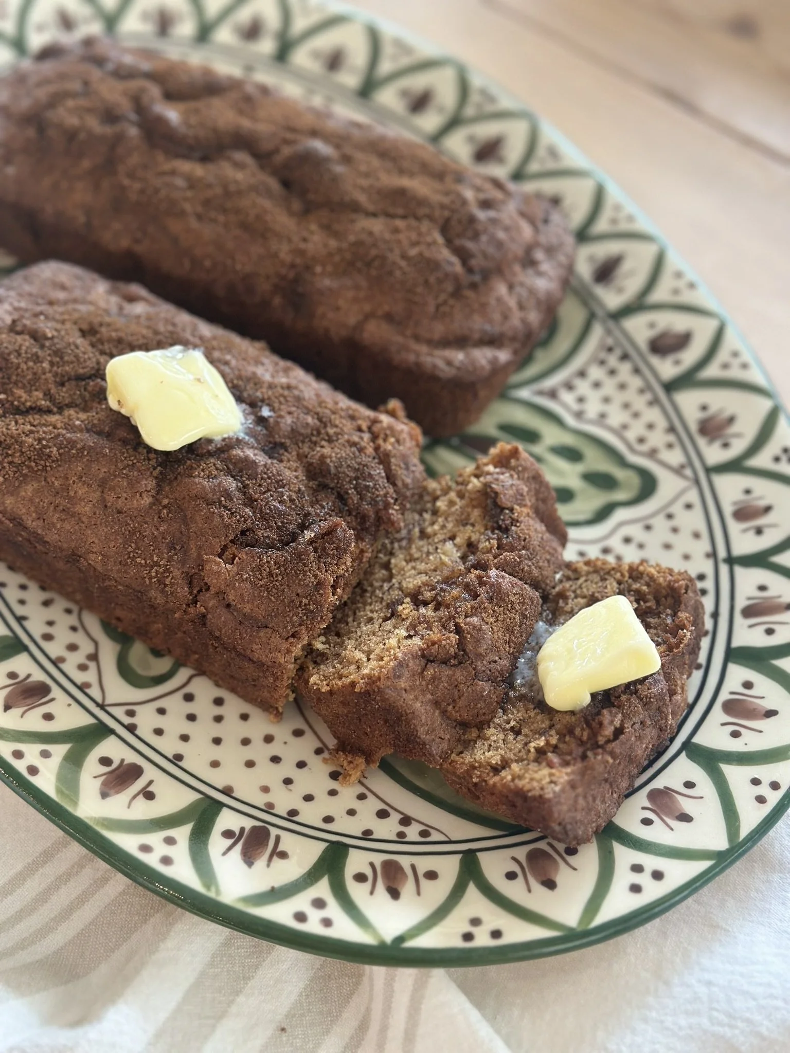 Moist banana bread with a sweet cinnamon brown sugar ribbon throughout. Perfect for breakfast, dessert, or a treat. Buy two and give one to a friend, neighbor, or teacher, or put it in the freezer to save for a rainy day!